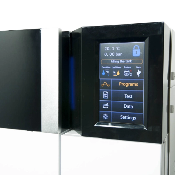 - Prosty w obsłudze ekran dotykowy: o przekątnej 4,7 cala zapewnia intuicyjną obsługę autoklawu. Umożliwia ustawianie parametrów sterylizacji, dostosowywanie cykli oraz monitorowanie przebiegu sterylizacji.